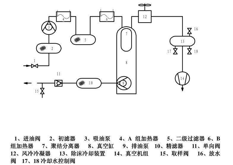 采用聚結(jié)與真空凈化,循環(huán)加熱和高低溫在線顯示控制相結(jié)合,有效解決高溫狀態(tài)K的油品乳化,使油屮所含水分徹底蒸發(fā)和排出。選用精密濾芯,四級(jí)過(guò)濾,使過(guò)濾精度達(dá)到5Mm以下。風(fēng)冷冷凝和真空機(jī)組足積木式組合使用,有效減少油沫M,充分脫除所分離的水分,在運(yùn)行狀態(tài)下可直接放除分離的水,無(wú)需停機(jī)操作。